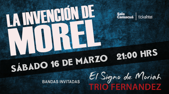 La Invención de Morel vuelve a sala Camacuá, esta vez junto a las bandas El signo de Moriah y Trío Fernández.