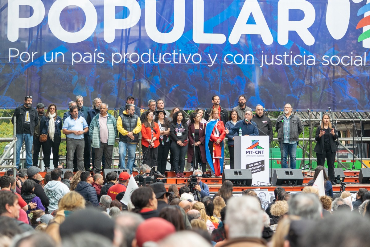 Miles de trabajadores y trabajadoras coparon la Avenida del Libertador, acompañando un discurso del PIT-CNT centrado en el futuro y en la perspectiva de un país productivo.