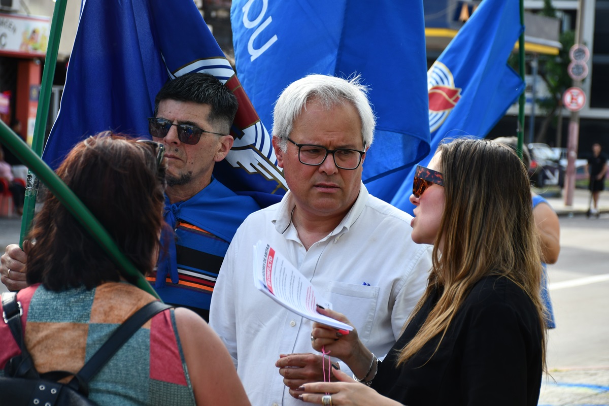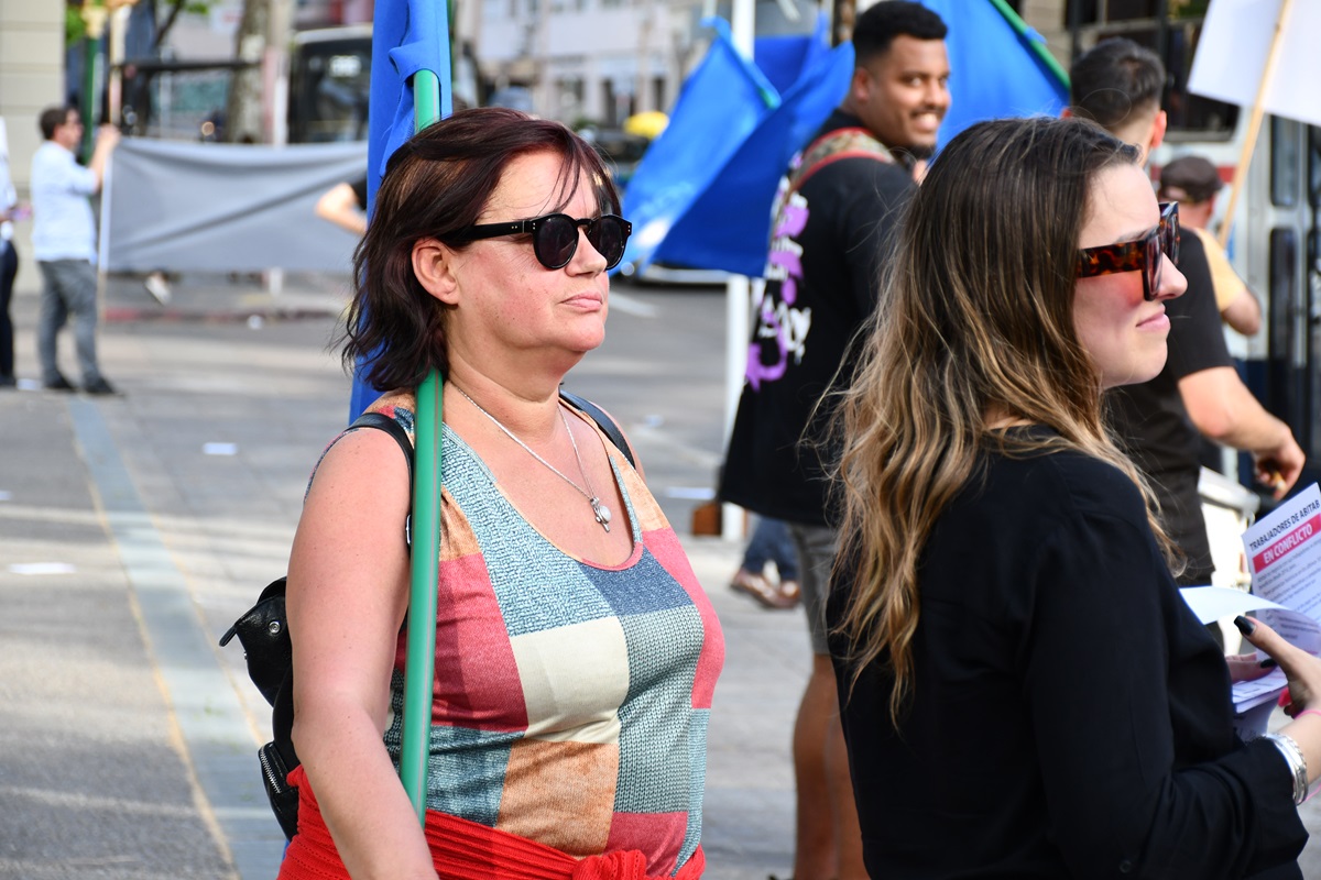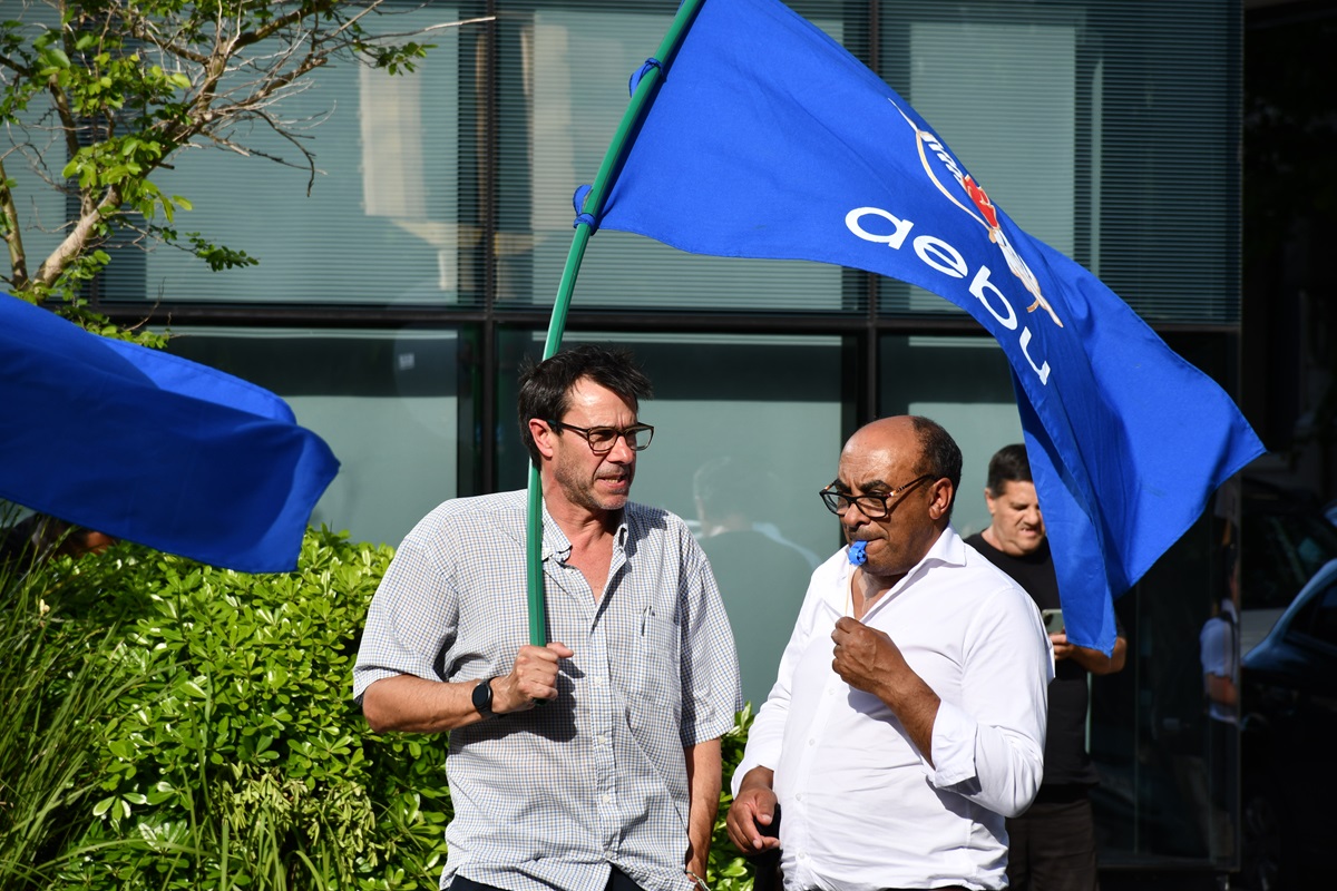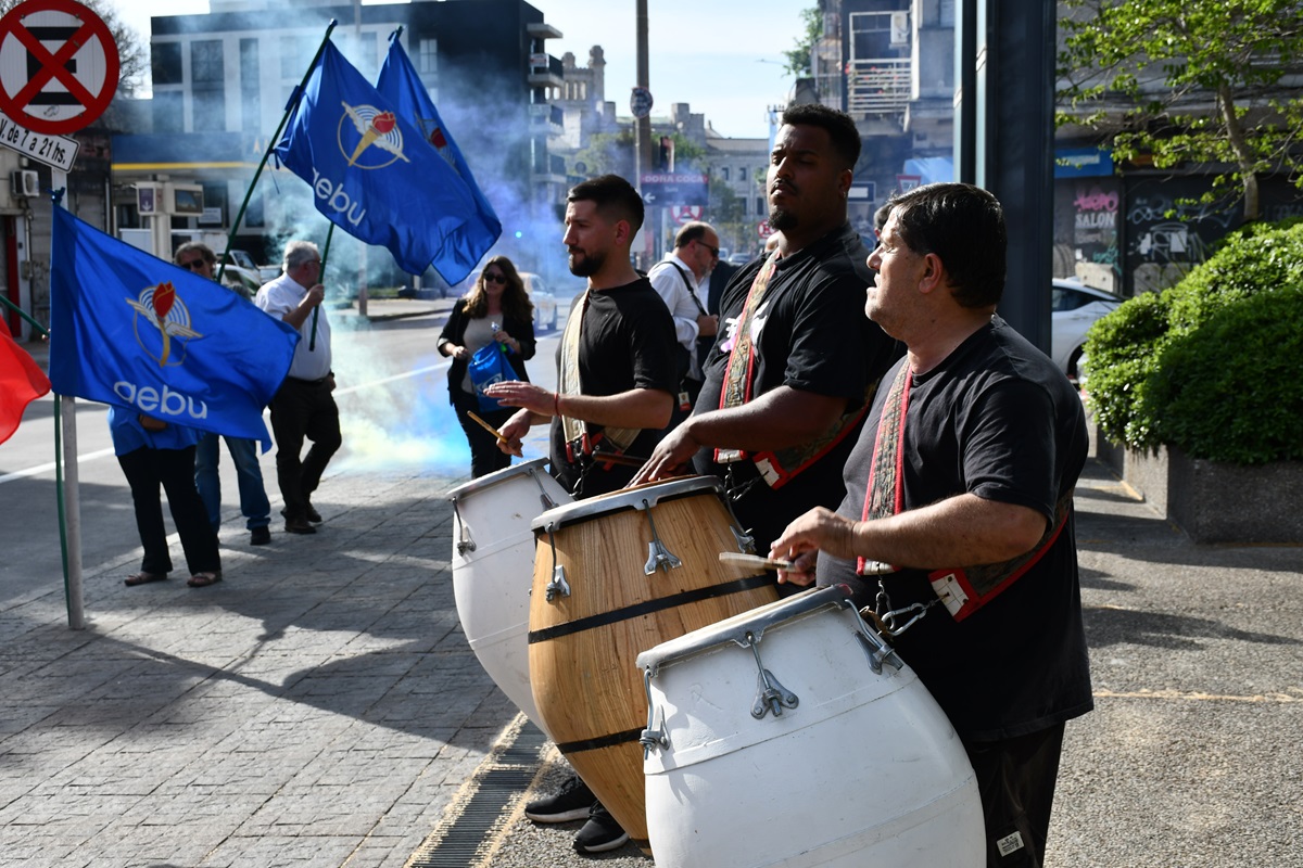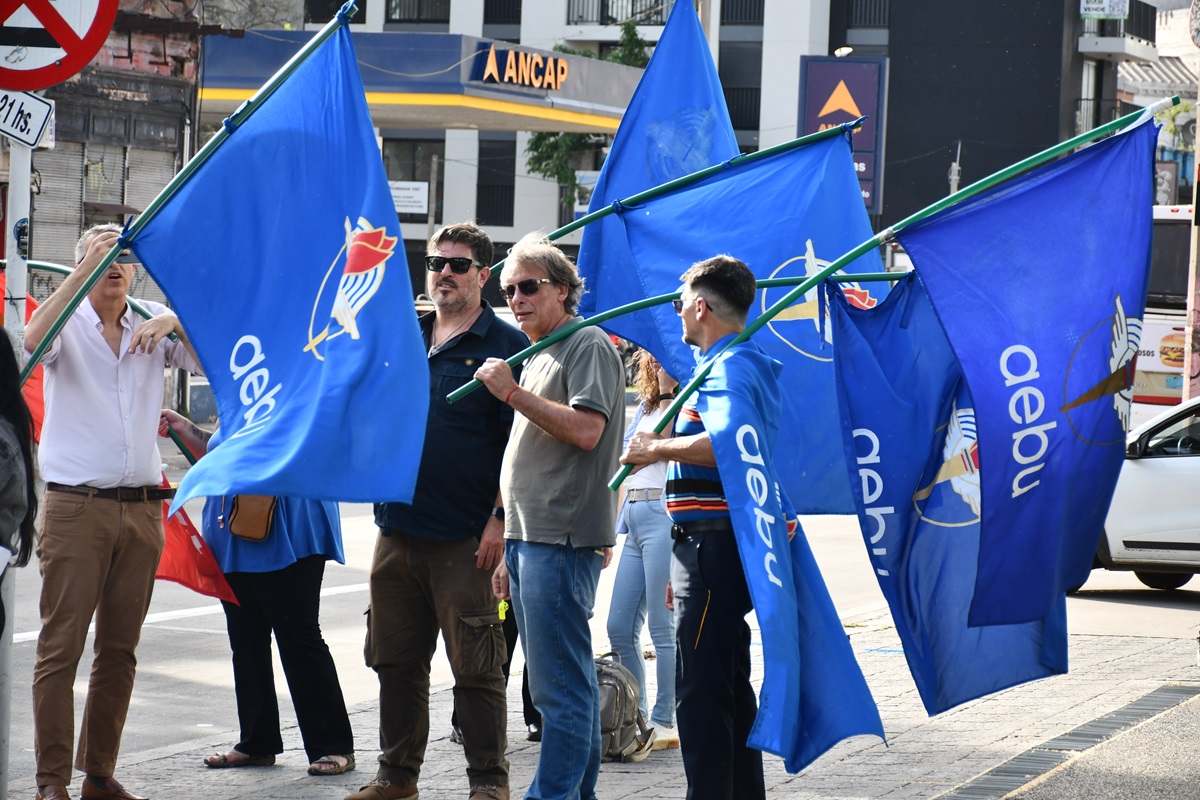 La movilización se realizó este jueves por la tarde, enfrente a las oficinas centrales de Abitab, en la avenida Daniel Fernández Crespo. A los compañeros de Abitab, que se encuentran en conflicto hace tres semanas, se sumaron integrantes del Consejo del Sector Financiero Privado y del Consejo Central, entre ellos el secretario general de AEBU, Martín Ford.