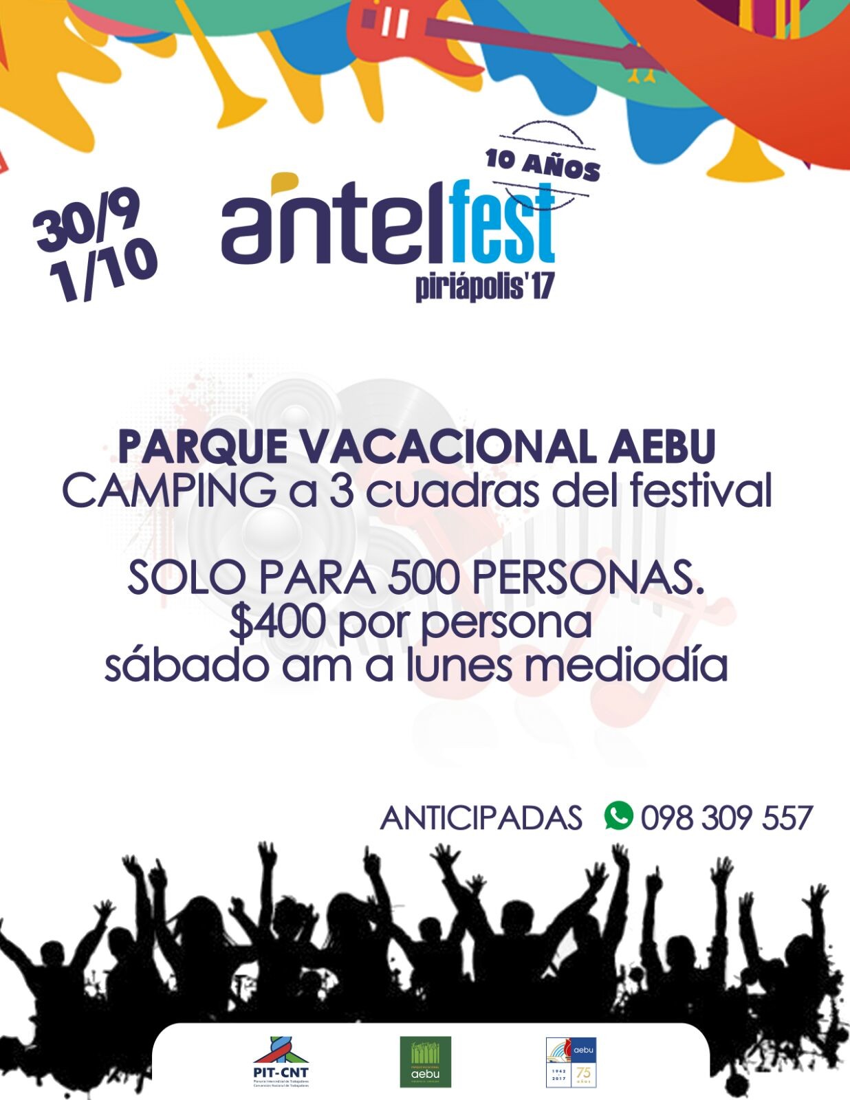 En este marco, el Parque Vacacional AEBU cuenta con una promoción que hay que reservar con tiempo porque quedan menos de 200 lugares. Enrique Piazza, responsable del camping, contó que están ofreciendo la posibilidad de alojarse desde el sábado a la mañana hasta el lunes al medio día por 400 pesos por persona. Hay plazas para 500 acampantes y hasta ayer tenían 300 reservas y una alta demanda de consultas al 098309557.