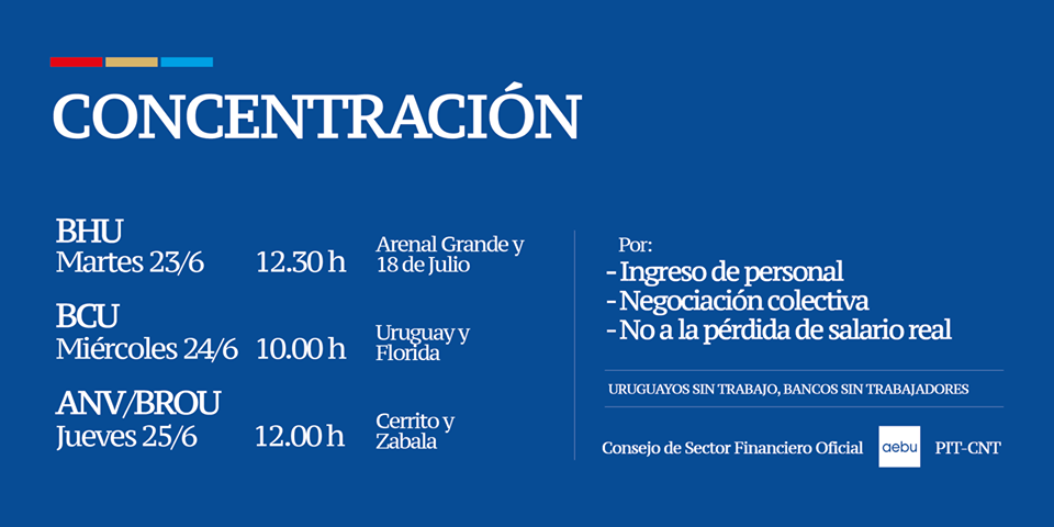 Estas asambleas serán complementadas por tres concentraciones: el martes 23 a las 12.30 en Arenal Grande y 18 de Julio; el miércoles 24 a las 9.45 en Uruguay y Florida, y el jueves 25 a las 12 en Cerrito y Zabala.