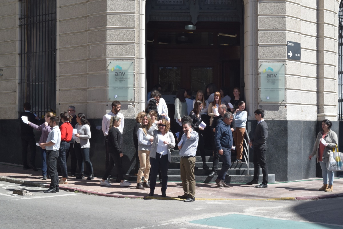 En cumplimiento de una resolución de su asamblea del 11 de octubre, los trabajadores y trabajadoras de la Agencia Nacional de Vivienda comenzaron a desplegar un plan de movilizaciones, en reclamo de un convenio colectivo propio que incluya, entre otros planteos, la reducción horaria para los "funcionarios ANV", es decir aquellos que ingresaron a partir del 2008.