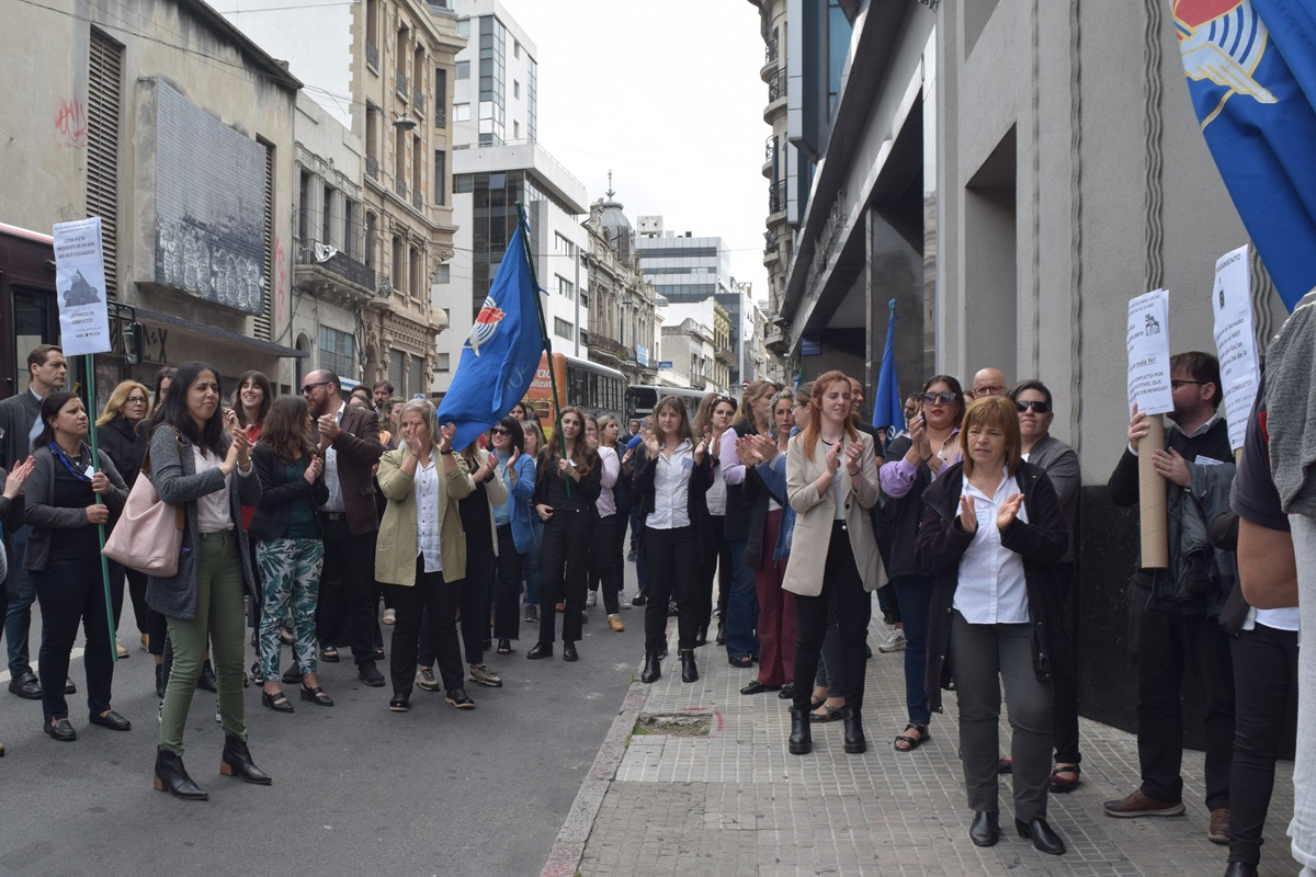 Este martes los trabajadores de la Agencia Nacional de Vivienda realizaron un paro entre las 13:30 y las 14:30 horas para movilizarse y acompañar la negociación que llevaron adelante integrantes de la Comisión Representativa y del Consejo del Sector Financiero Oficial en la Dirección Nacional de Trabajo.