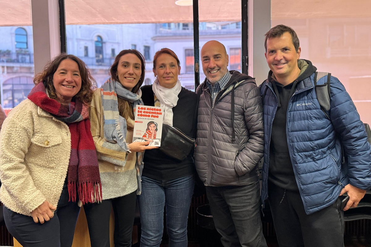 En el marco de la presentación de su libro "Los nietos te cuentan cómo fue" y de un nuevo 20 de mayo, Mariana Zaffaroni visitó AEBU y recibió el abrazo del sindicato.